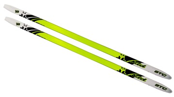 Turistické běžky Kid lemon STEP pro nejmenší lyžaře. Vhodné do stopy i neupraveného terénu. Odolné lyže v provedení CAP s lamelovým dřevěným jádrem (jádro je slisované z několika vrstev lehkého, převážně osikového dřeva), CAP konstrukce je z plastu typu ABS.